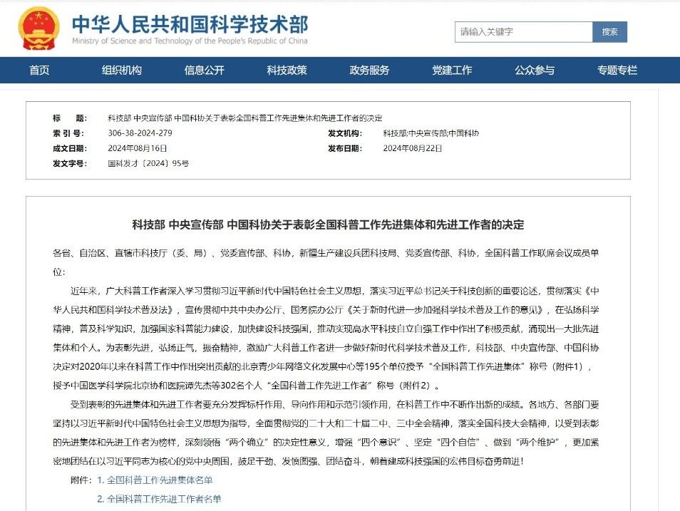 近日,科技部、中央宣传部、中国科协做出关于表彰全国科普先进集体和先进工作者的决定。我校爱情岛论坛
