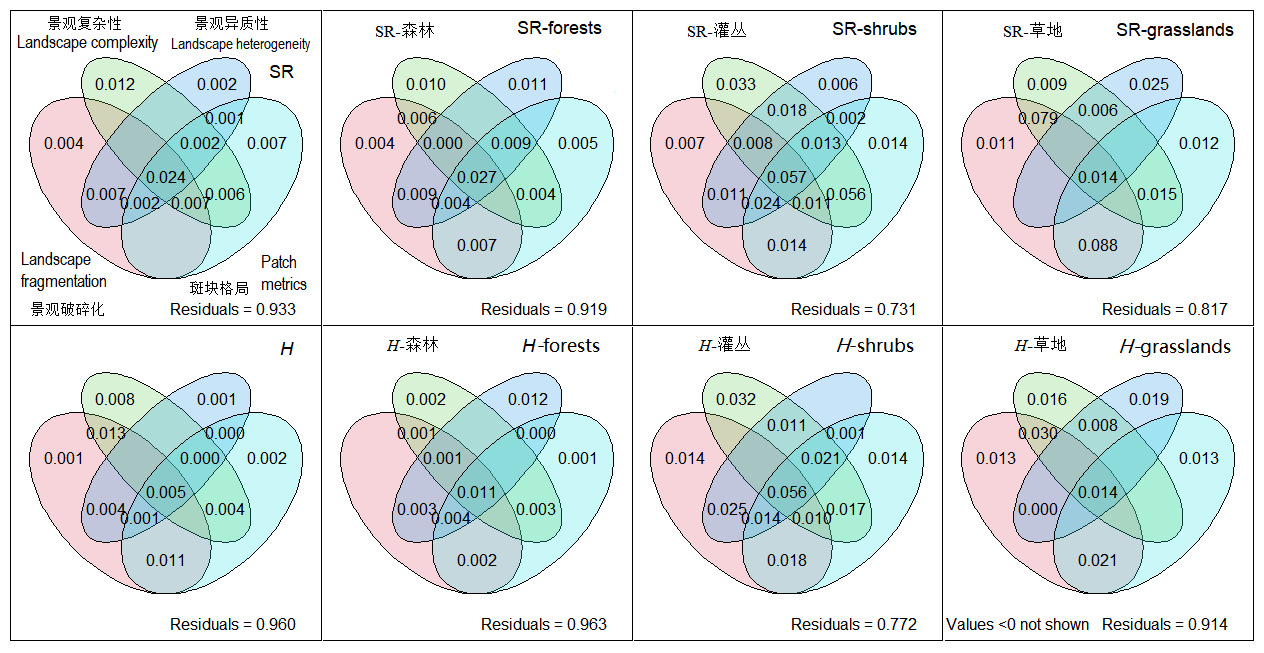 图4 景观复杂性、异质性、破碎化和斑块格局对植物物种α多样性的贡献