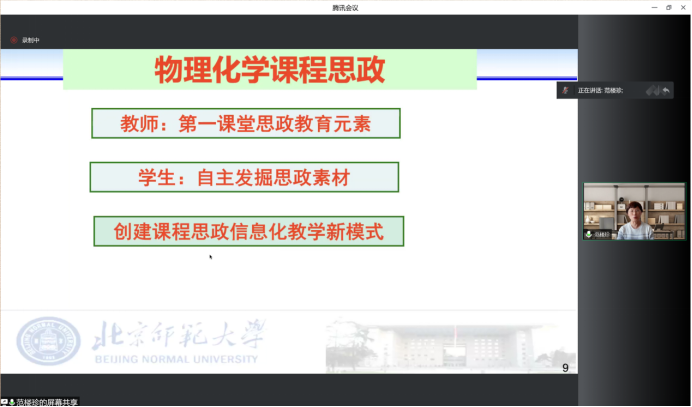 党委线上召开“课程思政建设”经验交流会(第四期)。交流会由学院党委书记张严教授主持,北京师范大学化学学院院长范楼珍教授主讲。