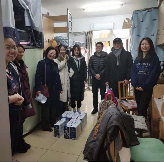 党委书记张严教授、副院长金军教授、学院行政办公室闫春龙老师来到学生宿舍,走访慰问我院春节期间留校学生,并送上新春大礼包。