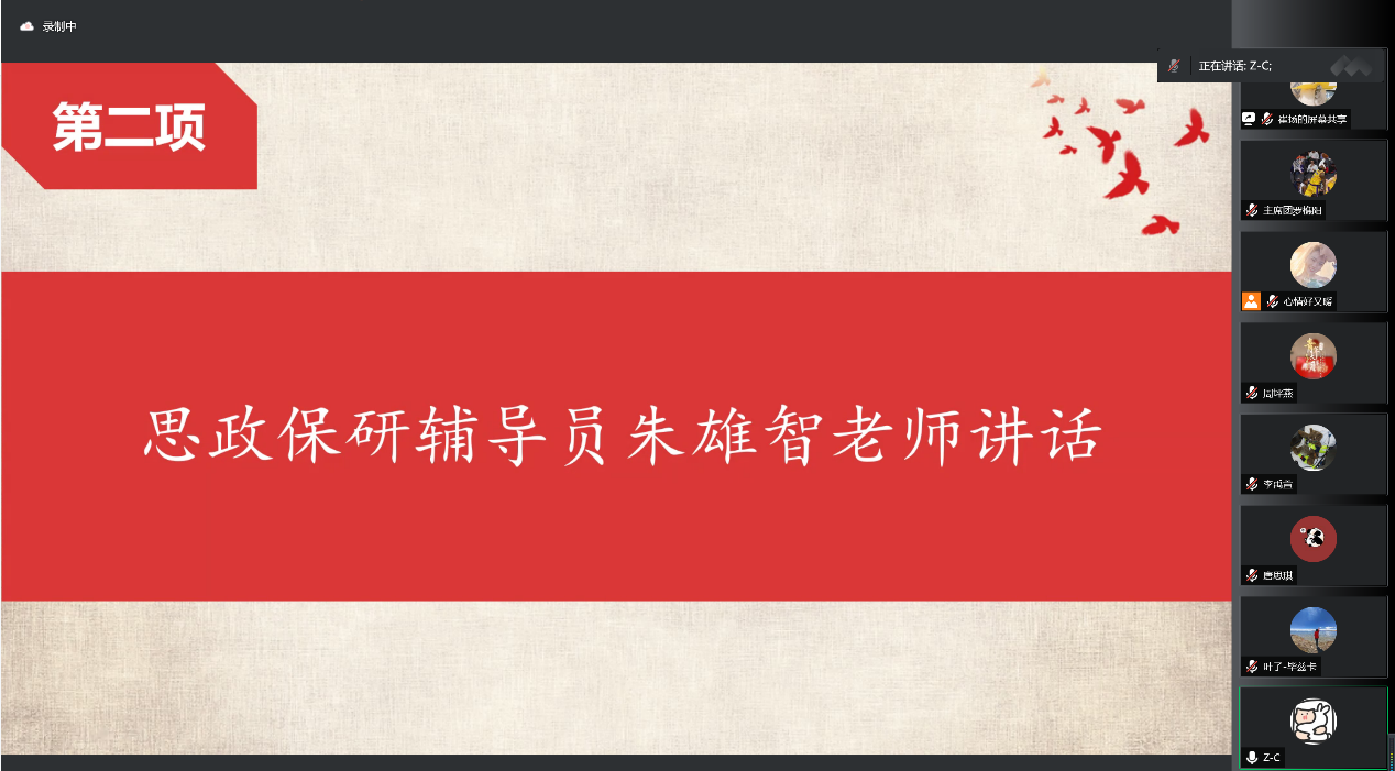 党委副书记、纪委书记王叶红老师、学院团委书记刘璇宇老师以及辅导员朱雄智老师,此外,还有团学组织的五名学生干部参加本次会议。