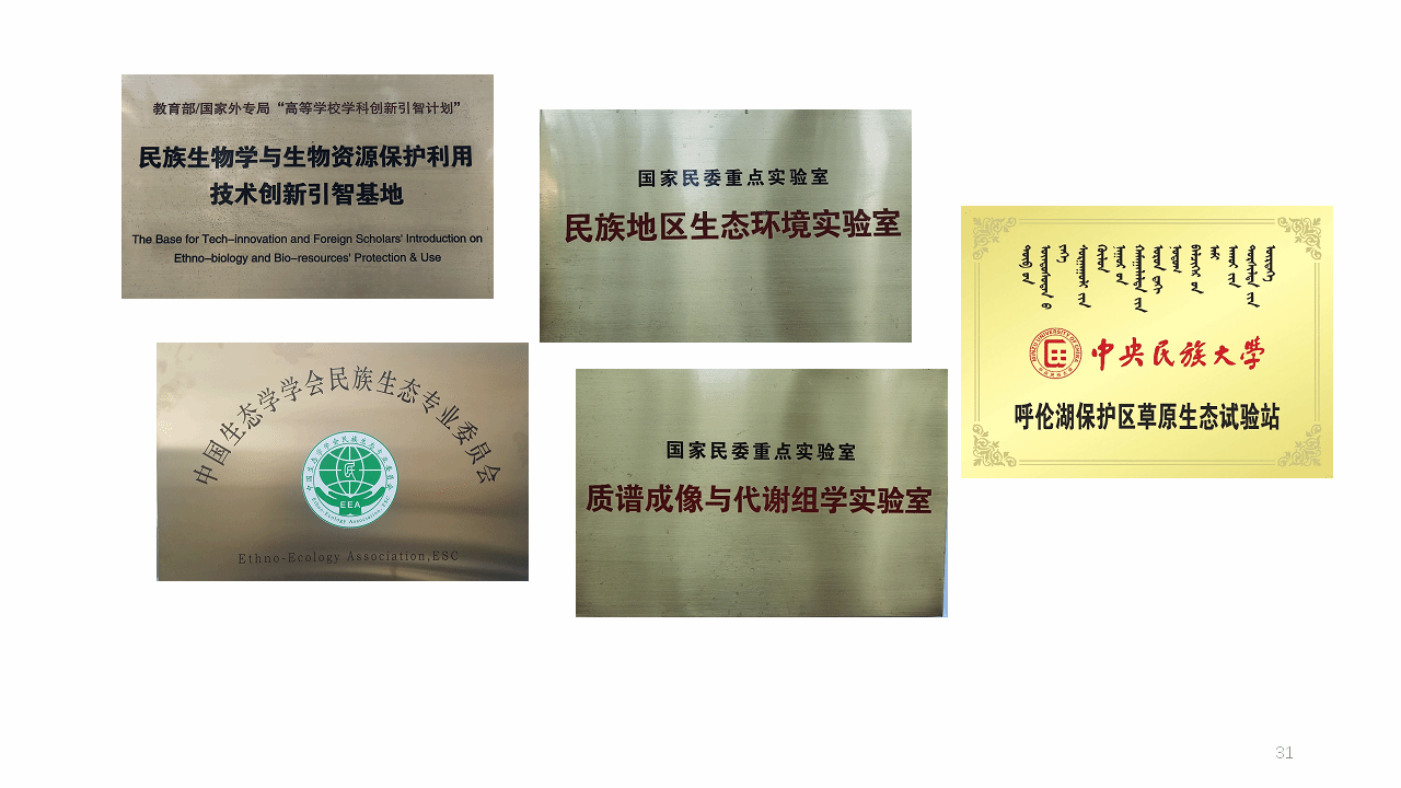 呼伦湖保护区草原生态试验站。创立了中国生态学学会民族生态专业委员会。为科学研究和人才培养提供了条件平台。