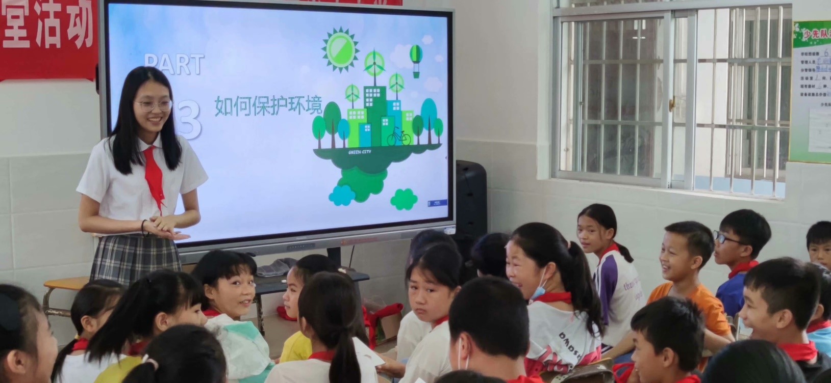 在刘博老师的指导下,陆毅选择了“十万大山瑶药的调查与研究”作为自己本科毕业论文选题,并于2019年5月22日“世界地球日”时,与邓明波、天亮等同学一同前往十万大山山区的大菉镇米丰小学为当地少数民族孩子们开展了“世界地球日主题活动”。