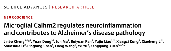 程金波副教授在AD致病机制方面取得了重要进展,研究成果以“Microglial Calhm2 regulates neuroinflammation and contributes to Alzheimer’s disease pathology”为题于2021年8月25日在线发表在国际顶级期刊Science子刊Science Advances(影响因子14.1,医学1区Top)上。文章链接://advances.sciencemag.org/content/7/35/eabe3600。